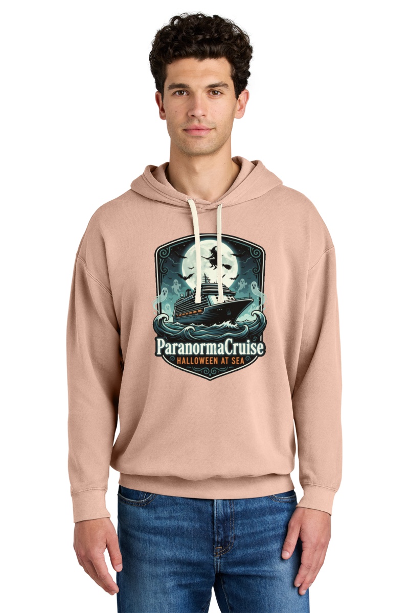 Crafted from premium Comfort Color fabric, this hoodie offers a lived-in feel from the very first wear, with a relaxed fit that’s perfect for layering over tees or cozying up after a night of ghost hunting. Whether you choose Peach, Hydrangea, or classic Black, each color complements the distinctive ParanormaCruise branding for a look that’s as unforgettable as the mysteries you’ll uncover.